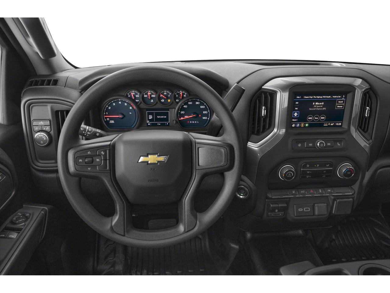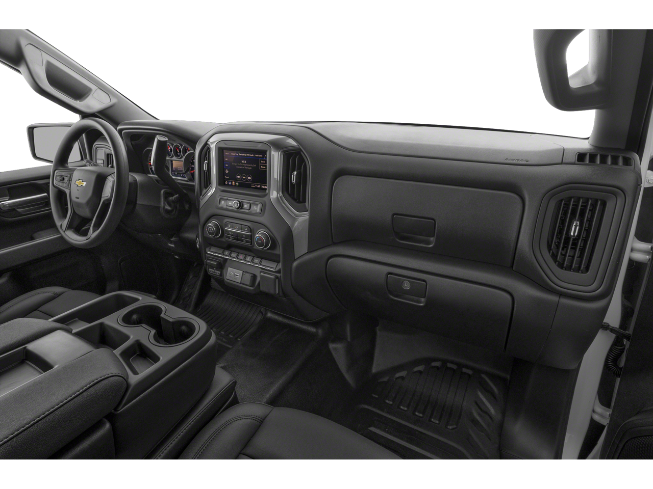 CHEVYTEC SPRAY-ON BEDLINER Black (does not include spray-on liner on tailgate due to Black composite inner panel), MIRRORS, OUTSIDE POWER-ADJUSTABLE VERTICAL TRAILERING WITH HEATED AND AUTO-DIMMING UPPER GLASS lower convex mirrors, turn signal indicators, puddle lamps, (U12) perimeter lighting, auxiliary lighting, power folding/manual extending (extends 3.31" [84.25mm]) Includes (DD8) auto-dimming rearview mirror. GLASS, DEEP-TINTED, AUDIO SYSTEM, CHEVROLET INFOTAINMENT 3 SYSTEM 7" diagonal HD color touchscreen, AM/FM stereo, Bluetooth® audio streaming for 2 active devices, voice command pass-through to phone, Wireless Apple CarPlay® and Wireless Android Auto® compatibility (STD), ENGINE, 6.6L V8 with Direct Injection and Variable Valve Timing, gasoline, (401 hp [299 kW] @ 5200 rpm, 464 lb-ft of torque [629 N-m] @ 4000 rpm) (STD), TRANSMISSION, ALLISON 10-SPEED AUTOMATIC (STD). Keyless Entry, Electronic Stability Control, 4-Wheel ABS, Vinyl Seats, Tire Pressure Monitoring System.